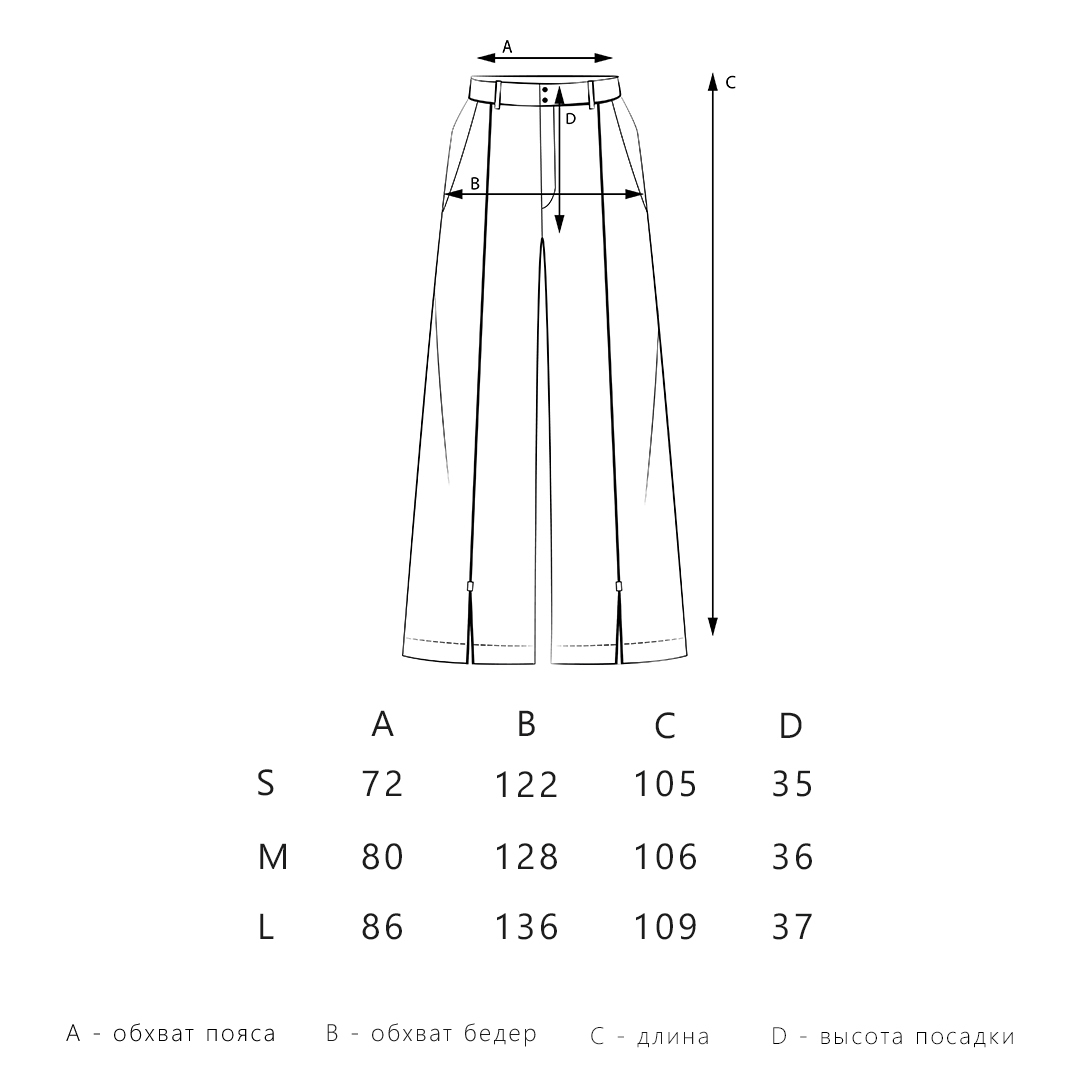 Плотная суконная шерсть, широкий и прямой силуэт, отделка в виде ложных стрелок, сетчатый подклад для приятной тактильности: важен каждый нюанс. Они собирают на себе фокус так же, как режиссёр добивается наивысшей концентрации вниманием к деталям и едва уловимыми звуками. Разрезы по низу зафиксированы металлическими элементами, делают динамику более мягкой и эффектно приоткрывают обувь в движений.